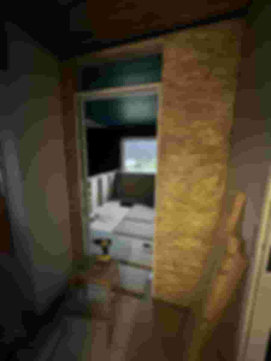 Jo! Högtalarkabeln skulle ju gömmas i väggen, det glömde jag! Suck. Allting var ju uppsatt, och skivan som sitter mot skjutdörren är dessutom limmad, för att göra den väggen lite mer stabil, så det var ju inte bara att ta ner den igen.