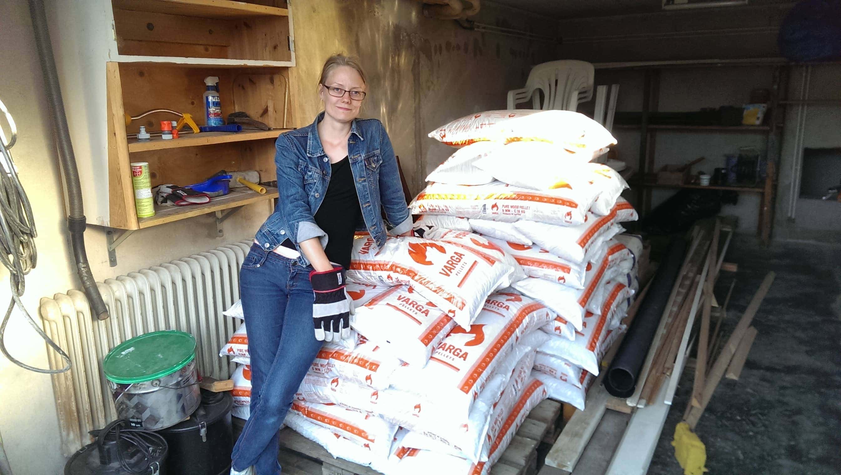 Innan vi köpte huset började det cirkulera ett skämt om vår pelletspanna och behovet av 8 pallar pellets per år. Det handlade om att vi skulle ha Kolla, 8 pallar pellets-fest, med bärhjälp inräknad.