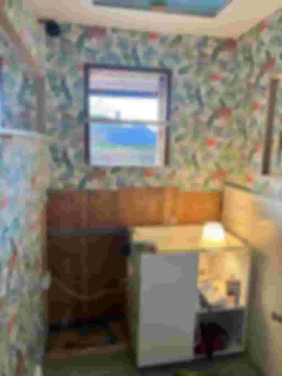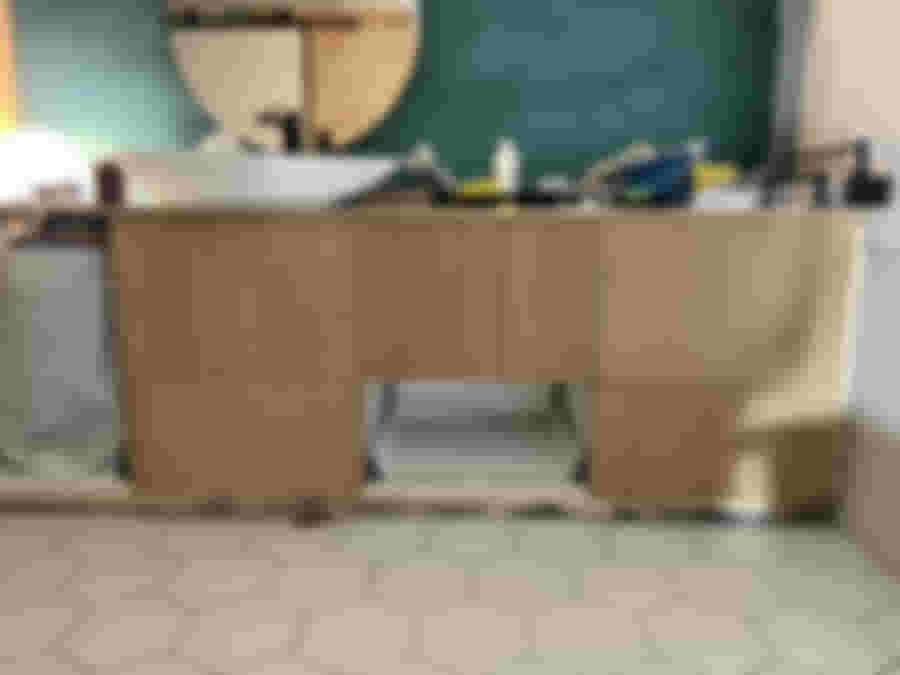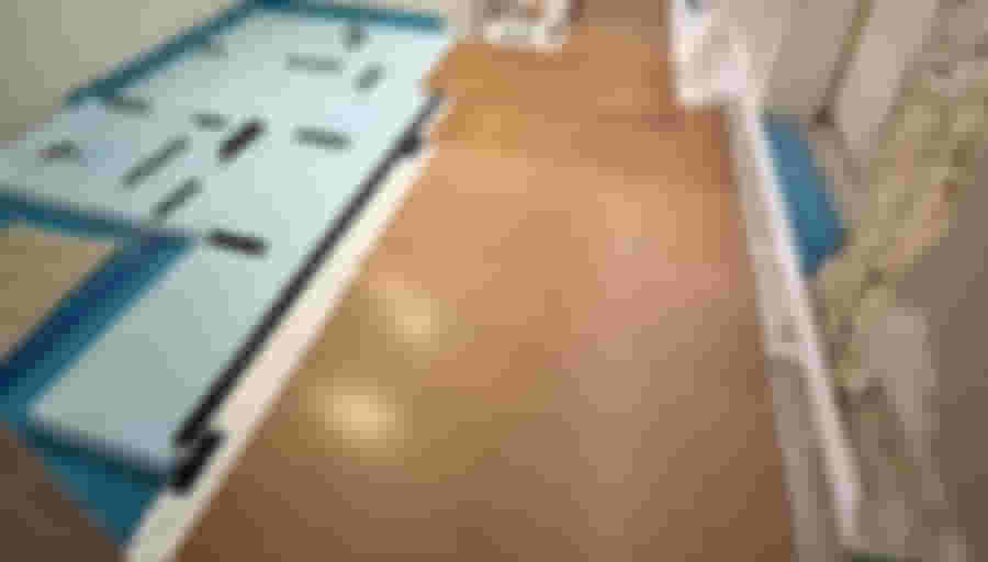 Mer av bambugolvet är på plats! Utrymmet som ska bli förråd har istället fått golvspån.