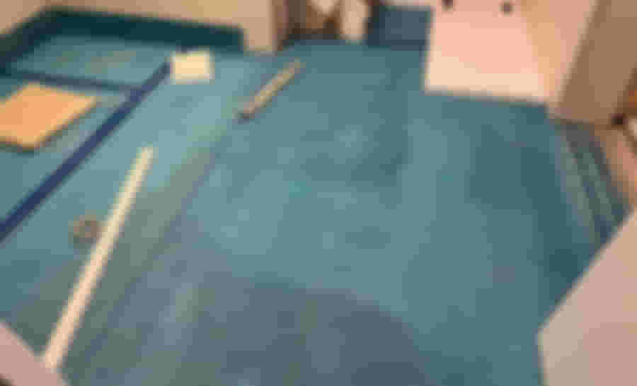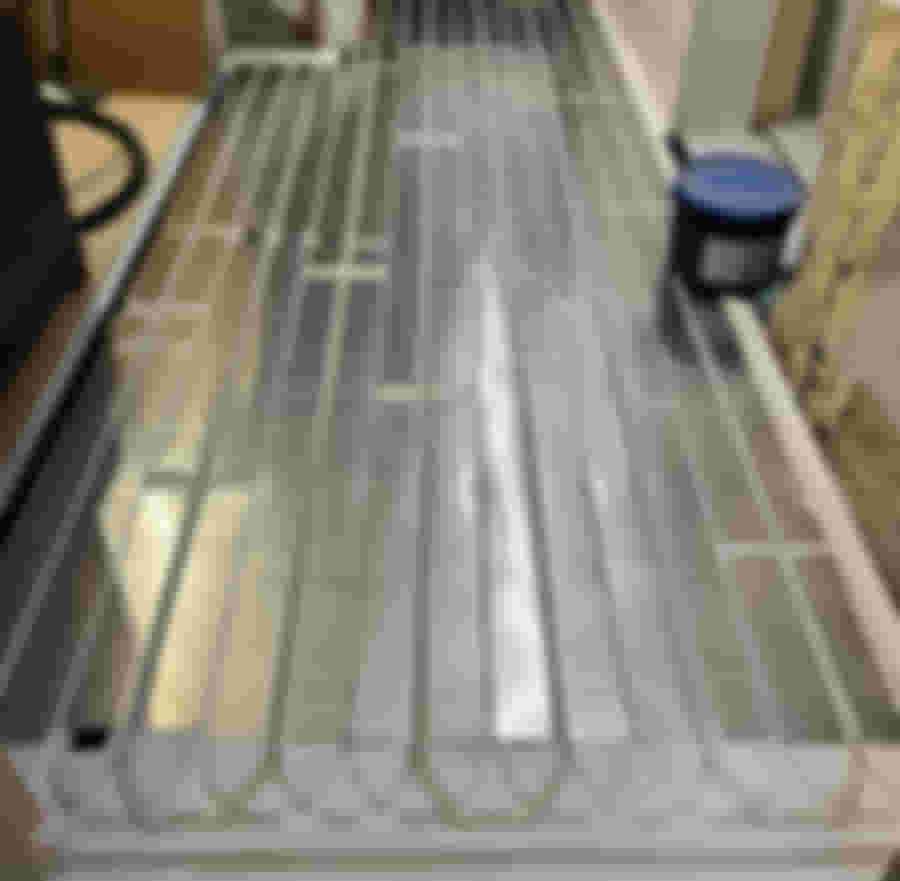 Plåt och värmeslang på plats, det var lite tajt att få till slingorna och att trappan tar upp lite utrymme och sabbar att det blir jämna slingor gjorde det ju inte lättare.