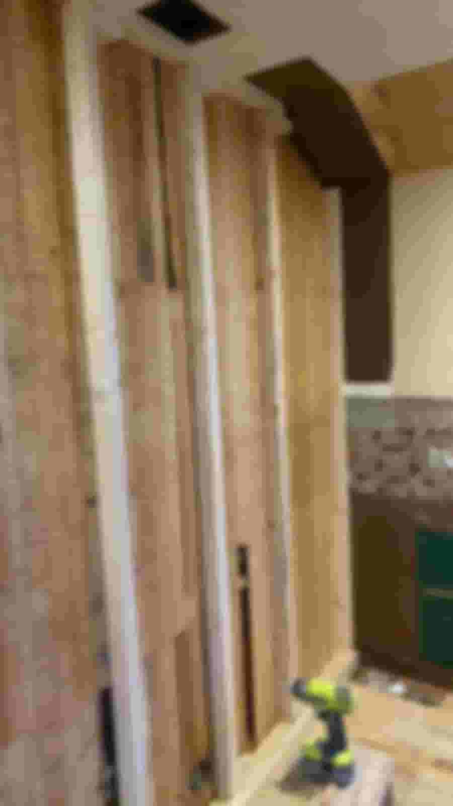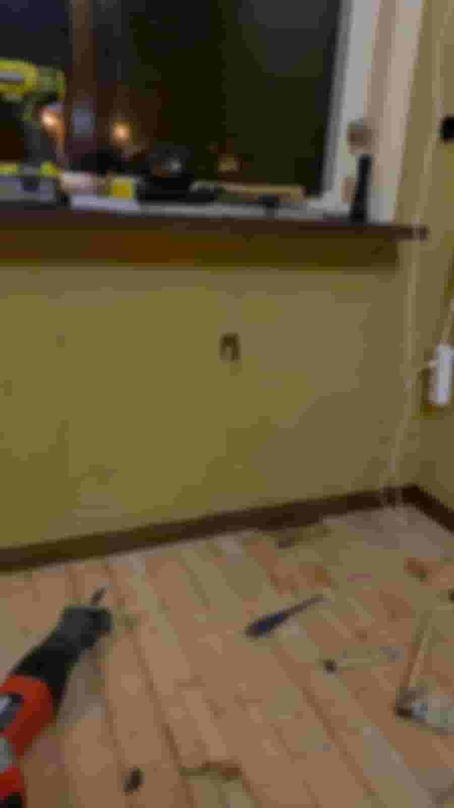 Det första och kanske lite märkliga steget blev att bygga en ny innervägg dikt an den befintliga innerväggen. Varför nu detta frågar sig kanske vän av ordning? På andra sidan väggen är det ett badrum och väggen har rört sig en del med följden att kaklet har spruckit.