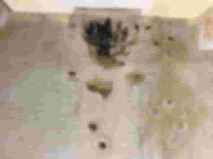 Röret som kommer från köket var dock i sämre skick. Det är svårt att se men det var helt fyllt av avfällning från gjutjärnet och skit, så det var inte konstigt att det inte hjälpte att rengöra vattenlåset. Det gamla köket används fortfarande men det ska snart rivas, så vi kopplar bort det från avloppet och sätter en tillfällig lösning.