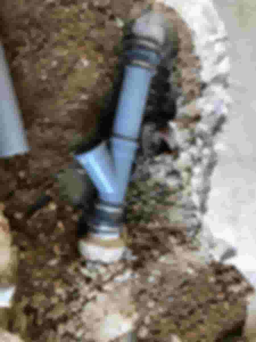 Det nya avloppsröret kommer på plats.