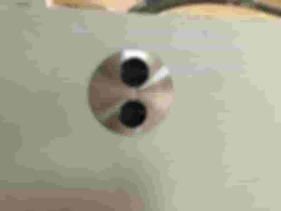 Sett uppifrån, ner i väggen ser det ut såhär. Uttaget är drygt 40 mm djupt och hela 115 mm i diameter.