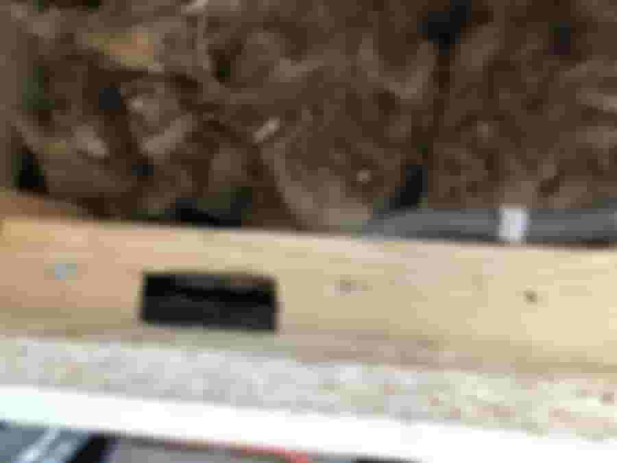 Hålet är stort och går halvvägs igenom regeln som sitter i väggen. Just denna har dock ingen egentligen syfte, så det gör ingenting att den blir lite försvagad. Till höger hålet för att dra ut sladden, via en slang ut inne i köksön.