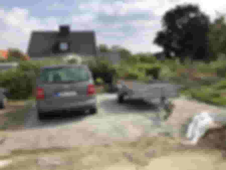 Det har blivit dags att fortsätta med projektet för parkering/bilplats igen. Ytan har fått sätta sig sedan sensommaren och jag har nu jämnat ut och paddat några varv. Vi har tittat på byasten som vi funderar på att lägga där, men än så länge finns det möjlighet att ändra oss ;)
