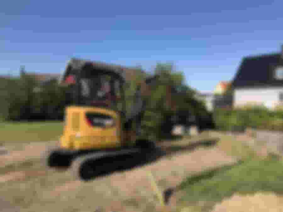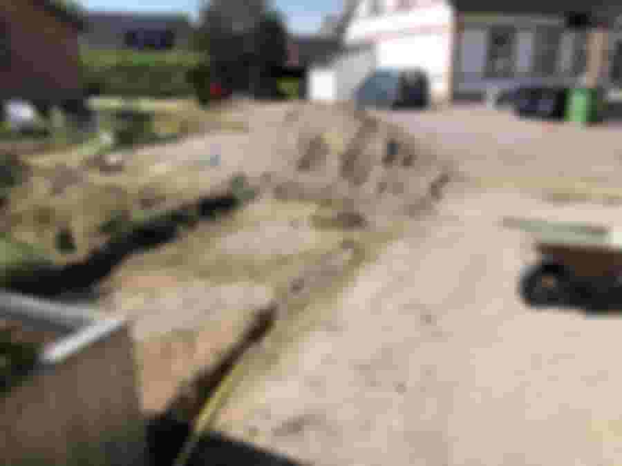 Men först ska stenmjölet som nu ligger på baksidan av huset tillbaks till framsidan och jämnas av och paddas.