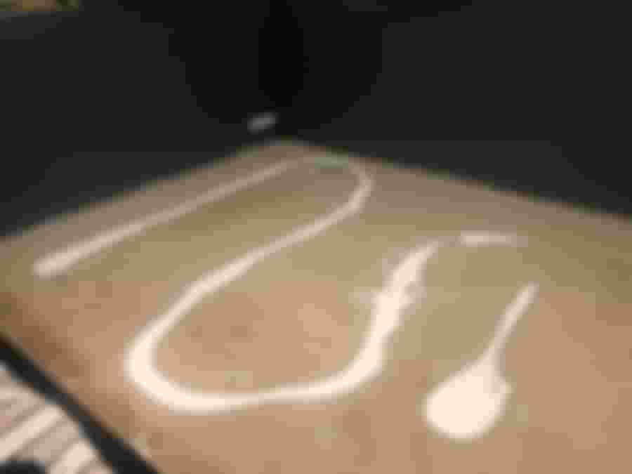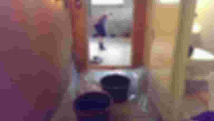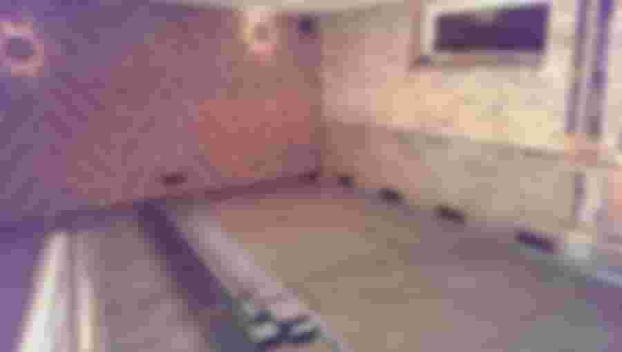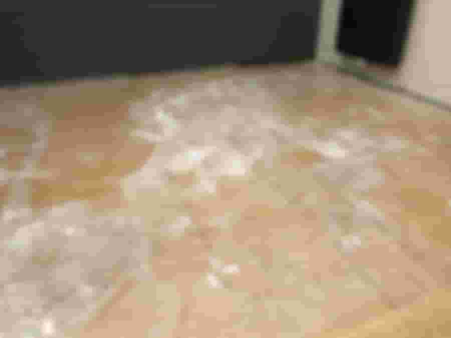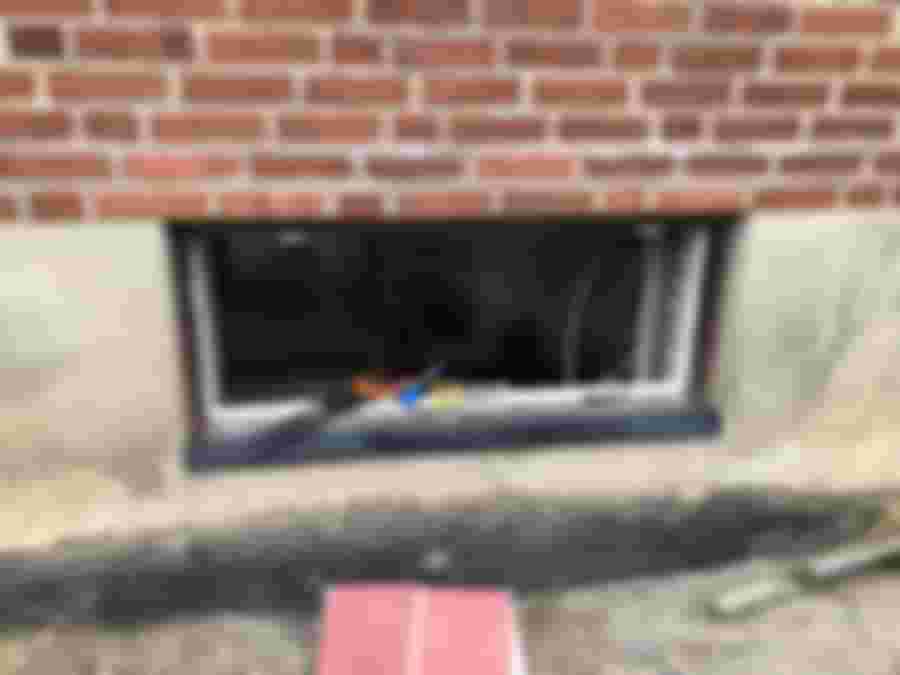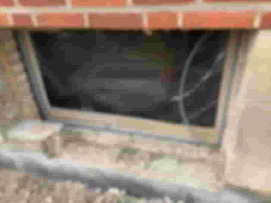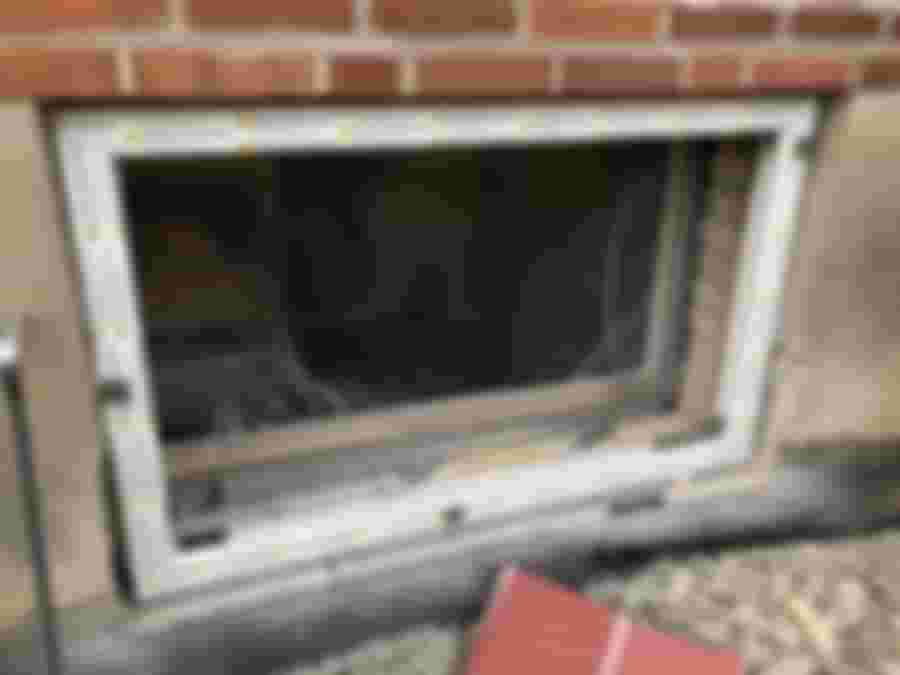 Hålet är klart från utsidan, allt damm har samlats i nederkanten.