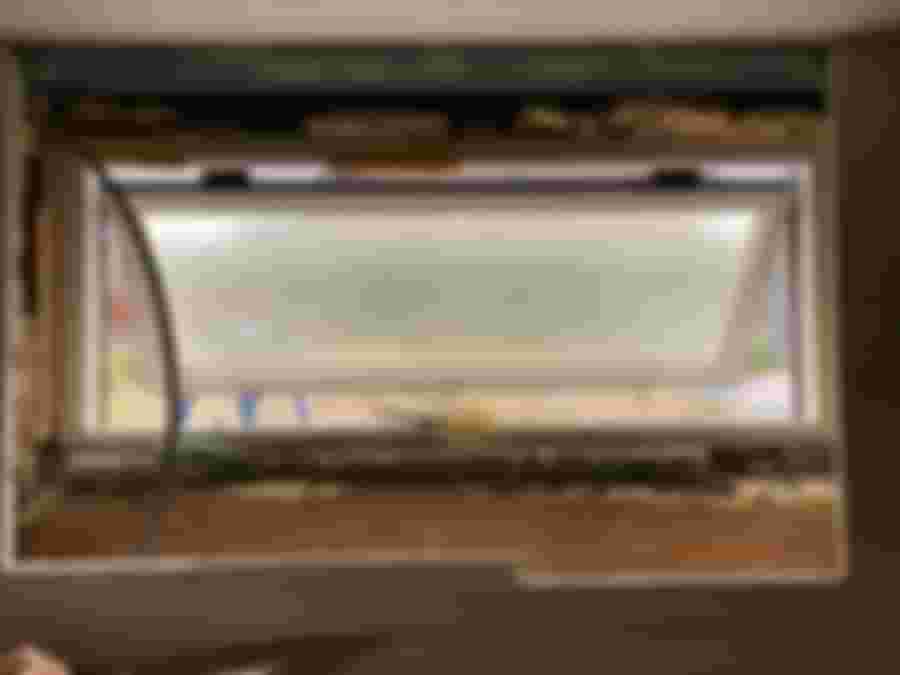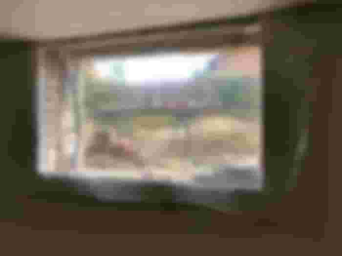 Lägg märke till plasten på insidan, så att jag ska kunna lägga mig och sova utan att ha grus överallt i sängen. Fungerande faktiskt över förväntan, och eftersom det är öppet mellan fönstren på insidan i den reglade väggen täcket jag både fönstren på insidan.