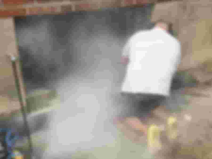 Brorsan slipade botten där fönstret ska stå, vilket damm-moln som steg upp över Ödåkra. Tur inga grannar hade tvätt på tork ute just då 😀