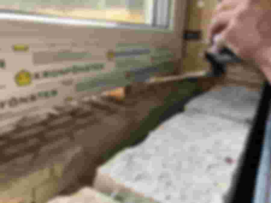 … och sen avslutar vi med fogskum för att få det att sitta stabilt och bli tätt. Nu återstår bara ett likadant fönster till.