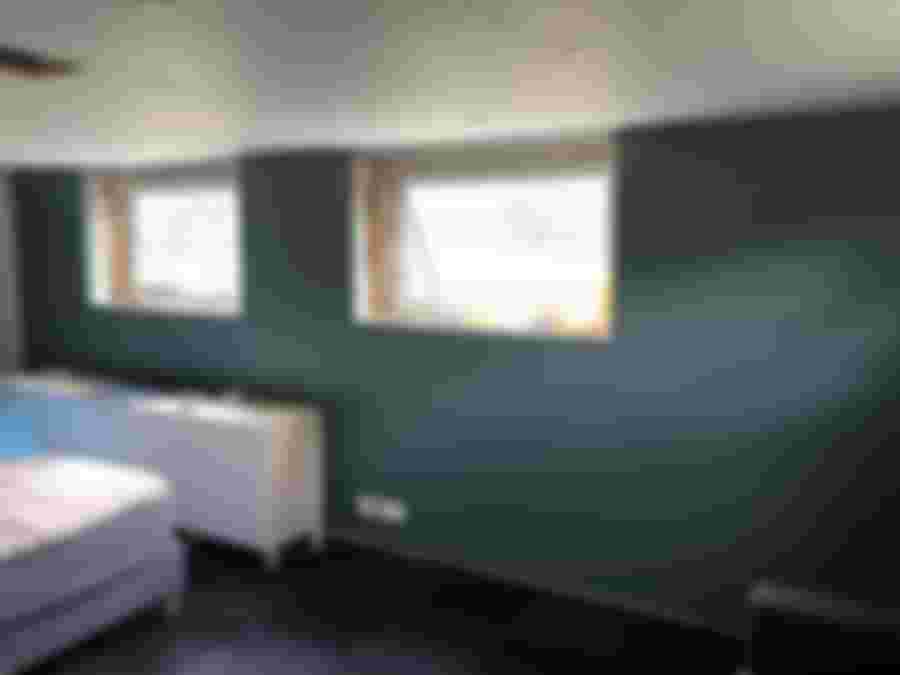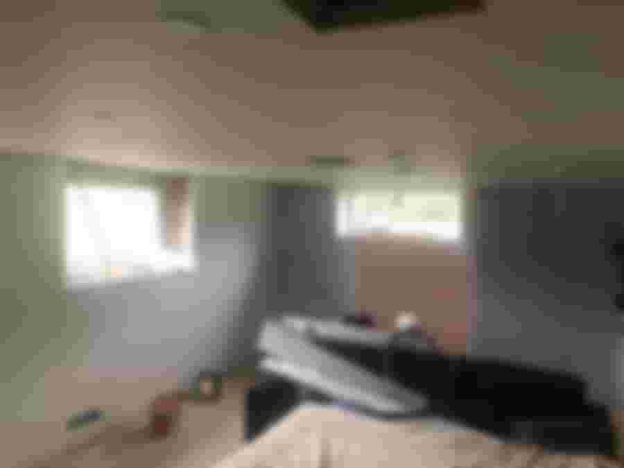 Redan när jag byggde sovrummet bestämde jag att sätta in större fönster i gaveln och förberedde för detta i den inre uppreglade väggen. Samtidigt visste jag att det var något år bort, så jag gipsade för den ytan där det skulle bli fönster, men ännu inte var. Dags att såga bort det.