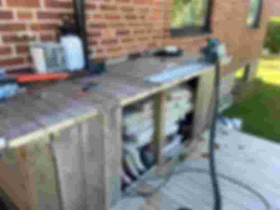 Mina fina öppningsbara lådor som jag byggde på långsidan mot häcken fick modifieras eftersom stolparna fästes där. Just i det ögonblicket var jag lite tacksam att jag inte skruvat fast den innersta plankan, dock 😉