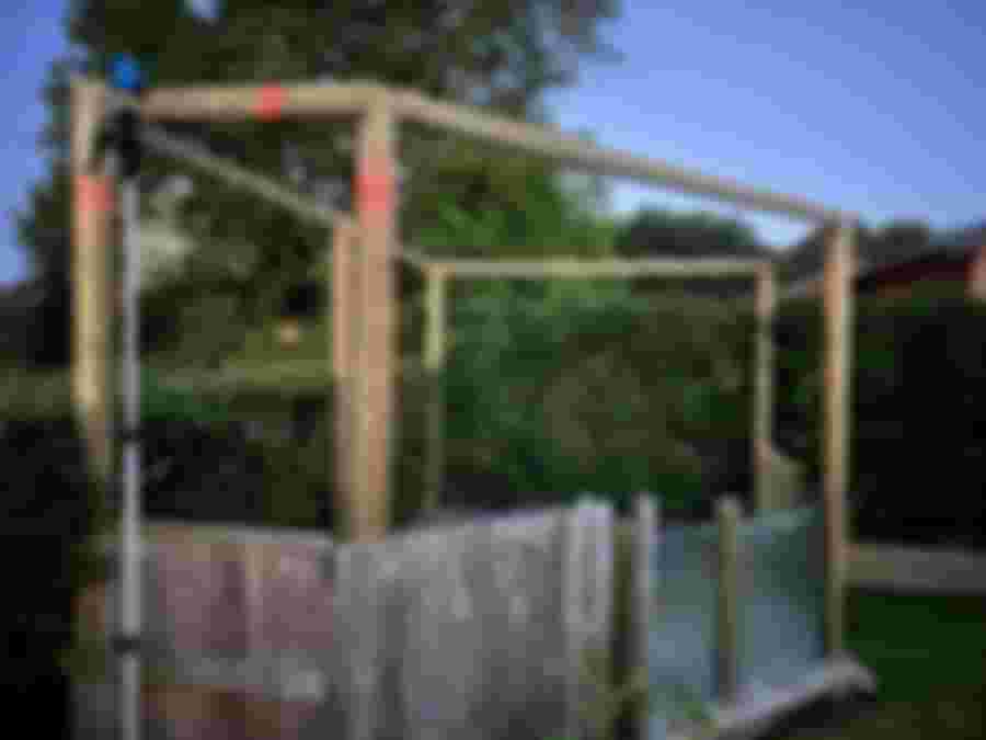 Lite klurigt att få upp de tvärsgående reglarna på egen hand, men med lite klossar och skruvtvingar gick det till slut. Den svenska sommaren passade också på att visa sig från den bästa sidan, med ömsom riktigt varmt och soligt och ömsom riktigt varmt, soligt och ösregn…