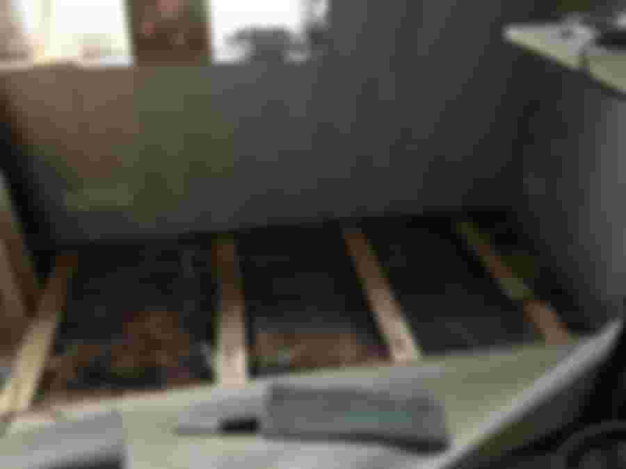 Det fick bli en ny vägg inne i förrådet för att dela av det. Tanken är att skapa en utgång till trädgården ungefär där vattenpasset står, men det blir ett projekt för nästa år.