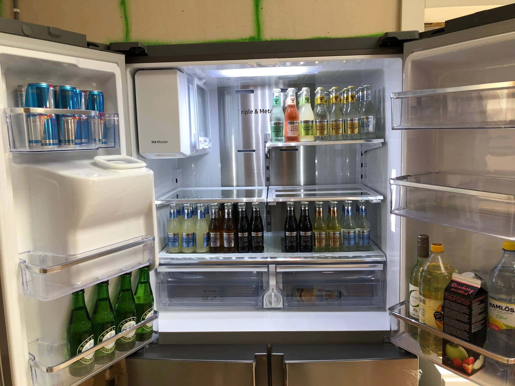 Stämmer bra, stora utdragbara lådor i botten. Ena dörren är alltid frys, den andra kan man ställa in på lite olika alternativ.